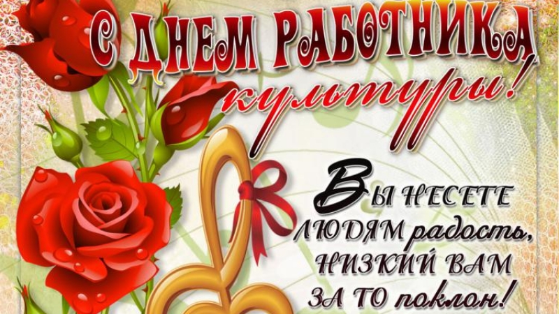 Уважаемые работники культуры, поздравляем Вас с профессиональным праздником, желаем Вам творческого вдохновения, полёта мыслей и фантазий, успешной реализации новых проектов. Пусть будут здоровы и счастливы Ваши близкие, а в Ваших семьях царит гармония и любовь.