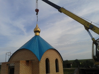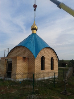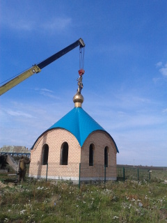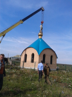 Строительство часовни в с. Молькеево продолжается. Проведена установка купола.