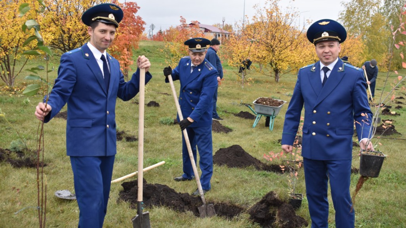 02.10.20021 Россия Федерациясе прокуратурасының 300 еллыгын бәйрәм итүгә әзерлек кысаларында Татарстан Республикасы Кайбыч районы прокуратурасы тарафыннан район прокуратурасы бинасы каршындагы аллеяга агачлар утыртылды.