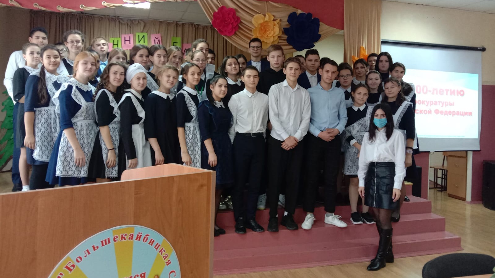 Шулай итеп, Кайбыч районы прокуроры ярдәмчесе Сафина Роза Олы Кайбыч урта мәктәбенең өлкән сыйныф укучылары өчен Россия прокуратурасы барлыкка килү тарихына багышланган лекция-әңгәмә үткәрде.