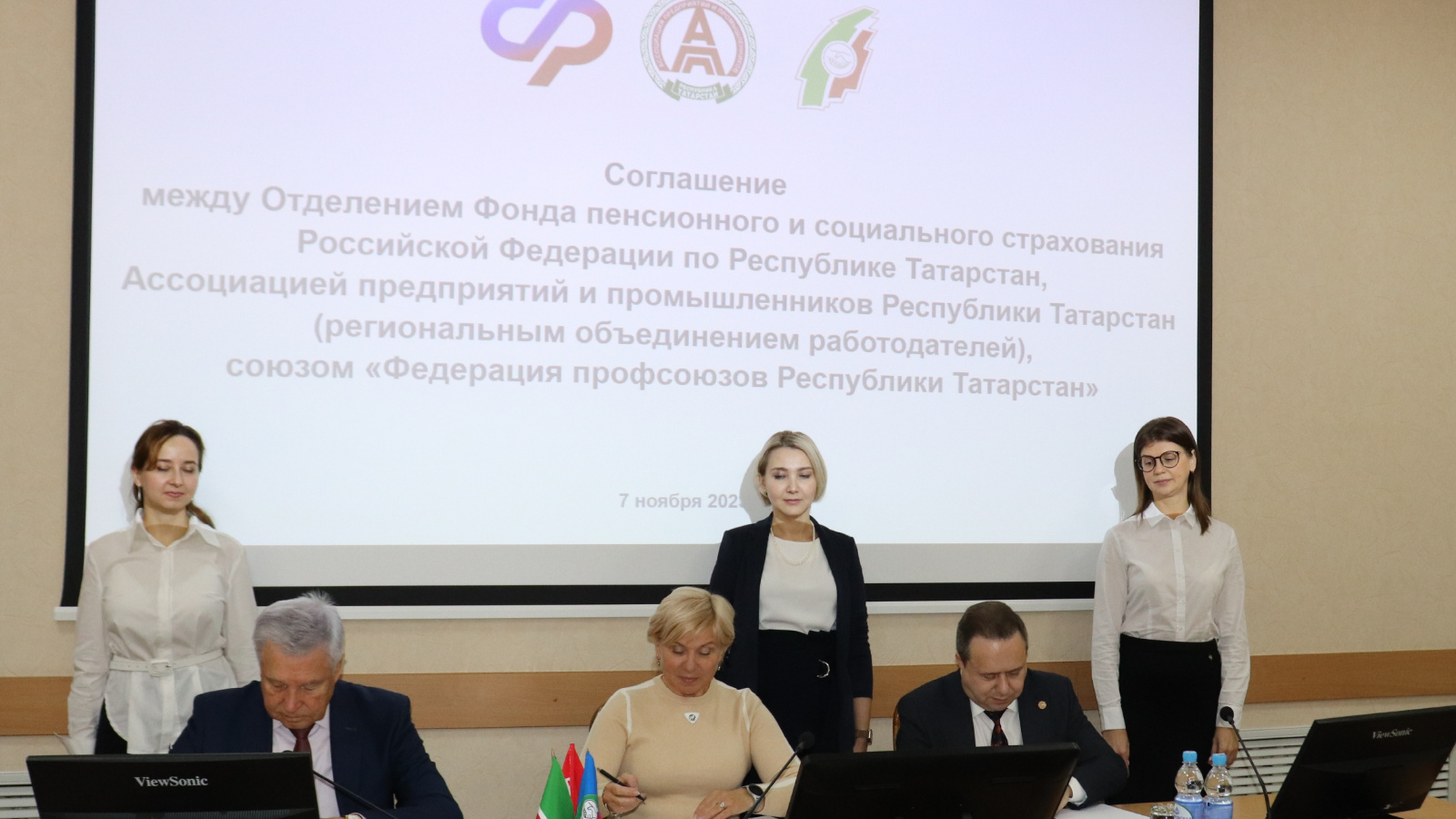 Социаль фондның Татарстан бүлеге идарәчесе Эдуард Вафин, Татарстан Республикасы Профсоюзлар федерациясе рәисе Елена Кузьмичева һәм Татарстан Республикасы предприятиеләре ассоциациясе президенты Александр Лаврентьев эшләүче гражданнарны социаль яклау системасының нәтиҗәлелеген арттыру мәсьәләләре буенча үзара хезмәттәшлек турында килешү имзаладылар.